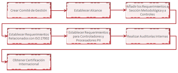 Basados en nuestras experiencias con el manejo de la protección de datos personales en distintas empresas en una variedad de industrias, hemos creado la secuencia de pasos metodológicos para el desarrollo de un SGPI, bajo la óptica ISO 27701